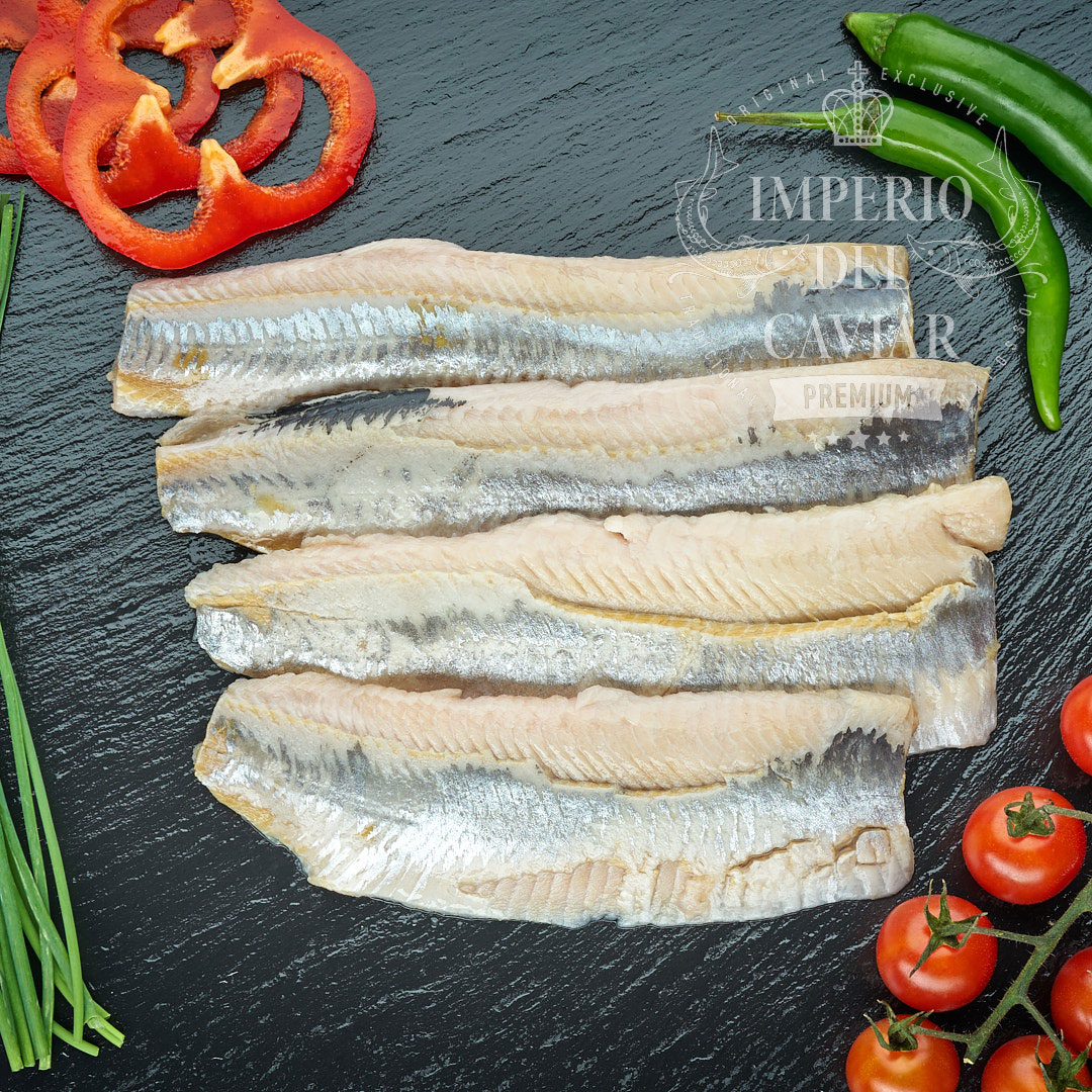 El filete de arenque «Matías» es un verdadero manjar para los paladares exigentes. El pescado se captura en las frías aguas del Atlántico durante la temporada en la que está especialmente jugoso y graso, y posteriormente se somete a un proceso de elaboración cuidadoso que preserva su sabor natural y sus propiedades.