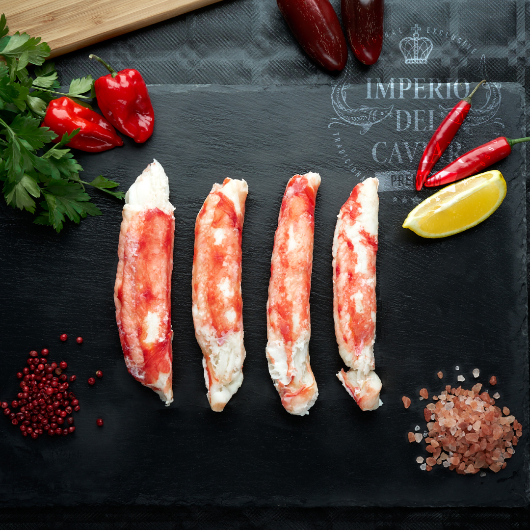 El primer segmento es la parte más grande y valiosa de la pata del cangrejo, conocido por su sabor suave y tierno. La carne de estos segmentos requiere una preparación mínima; puede ser simplemente rociada con salsa o jugo de limón y servida inmediatamente. La carne de cangrejo rey se considera una delicadeza y un producto dietético. La carne tiene un sabor ligeramente dulce y salado y es la más jugosa y tierna entre los crustáceos. El cangrejo rey se suele servir con mantequilla derretida, limón o salsa de ajo. El producto se puede disfrutar como un plato independiente, utilizado en varias ensaladas o como relleno para pollo. Se cocina inmediatamente después de la recolección. ¡No utilices el microondas! Si se descongela rápidamente en el microondas, la carne de cangrejo perderá su sabor y su valor nutricional, y se secará. Si el cangrejo está rojo, significa que ya está cocido; si lo vuelves a hervir, la proteína se coagulará y la carne quedará "gomosa". La carne de cangrejo no combina bien con berenjenas, mandarinas o peras. ____________________________________________________________ Este es un producto basado en el peso. El precio está indicado por kilogramo. El peso puede variar de 1 a 2 kg. Se realizarán ajustes de peso y costo después de una llamada de nuestro personal.