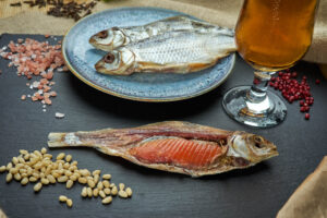 Для тех, кто предпочитает что-то более солёное, чем икра, мы предлагаем разнообразные рыбные снеки (солёно-вяленые): чехонь, судак, щука, лещ, плотва, сиг и другие.