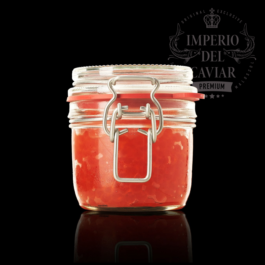 Видобуток ікри здійснюється на узбережжі Тихого океану. Перероблена і заморожена на Алясці. Ікра аляскинської кети має блідо-червоний колір з яскраво вираженим помаранчевим відтінком. Кетова ікра є найпопулярнішим видом лососевої ікри та високо цінується через великий розмір ікринок. Розмір ікринок кетової ікри вищого ґатунку становить 5 або більше міліметрів, а водянистість дорівнює нулю. Кетова ікра також високо цінується за свій смак, тривалий термін зберігання і характерний звук, коли ікринки «лопаються » в роті. Має ніжний вершковий смак, без гіркуватості і рибного запаху. Солі в ікрі трохи більше 2,6%, оболонка ікринок зберігає свою еластичність. Ікра при видобутку в місці вилову проходить кілька етапів очищення, засолюється, фасується в контейнери та проходить акустичну заморозку. Тому, розморозивши її, ви отримуєте продукт, який за своїми смаковими характеристиками нітрохи не відрізняється від свіжого, вона залишається сухою та корисною, потрапляючи до вас на стіл без втрати якості. Ідеально рівні, гладкі, блискучі ікринки дуже апетитно виглядають на бутербродах і можуть бути прикрасою інших страв.