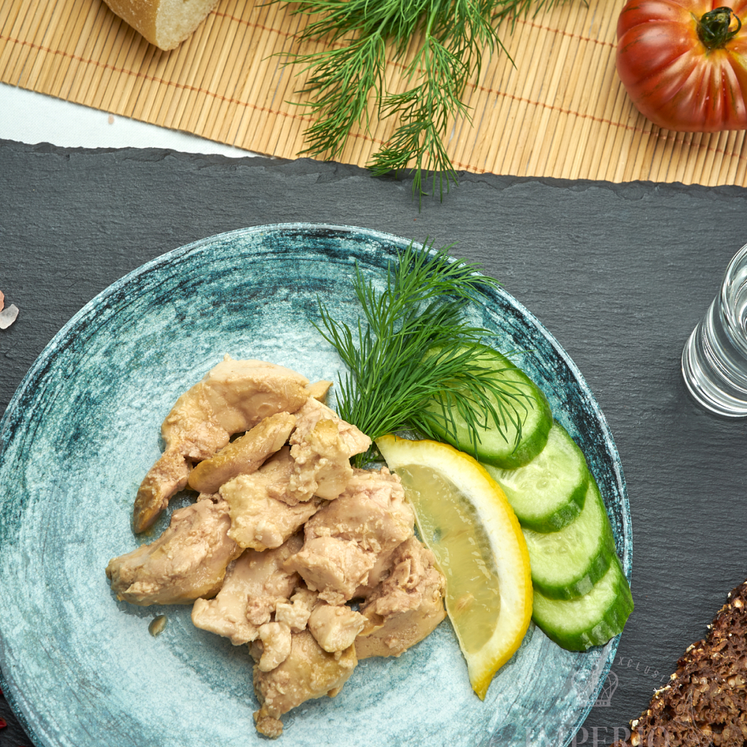 Печінка атлантичної тріски яка, як правило, продається у консервованому вигляді у власному жирі.